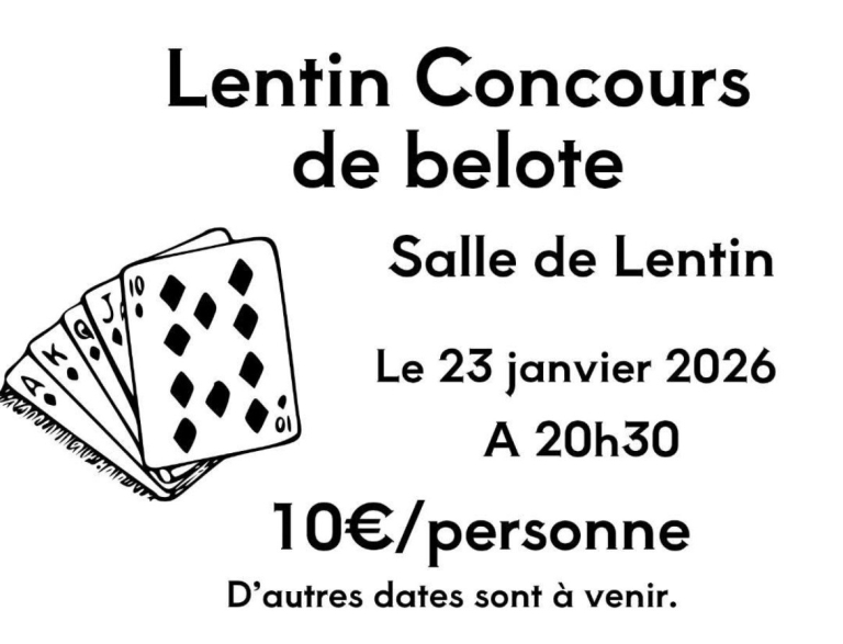 Le Foyer Socio Culturel de Lentin organise un concours de belote le 24 octobre 2025 à la salle de Lentin.