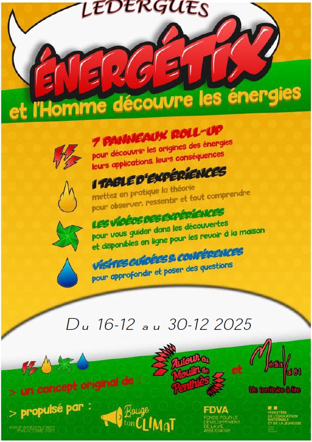 L’association Autour du Moulin de Penthiès vous présentera son exposition « Energétix et l’Homme découvre les énergies » durant la fin du mois de décembre à l’ancien Café Courrèges à Lédergues. Des visites guidées sont prévues le samedi 20 – dimanche 21 – samedi 27 et dimanche 28 décembre à 15 heures. Ou sur rendez-vous, inscriptions au […]