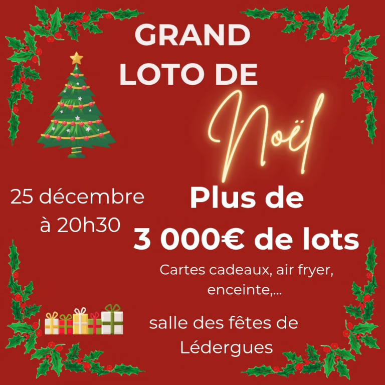 Comme chaque année, le comité des fêtes de Lentin organise le 25 décembre à 20h30, à la salle des fêtes de Lédergues, son Loto de Noël. Plus de 3000 € de lots vous attendent, bons d’achats, air fryer, lots gourmands, … Le comité des fêtes de Lentin vous attend nombreux pour ce moment de partage et de convivialité.