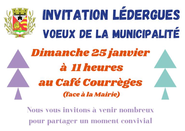 Le maire et le conseil municipal vous invitent aux vœux de la municipalité qui se dérouleront le dimanche 25 janvier à 11 heures au Café Courrèges (face à la Mairie).